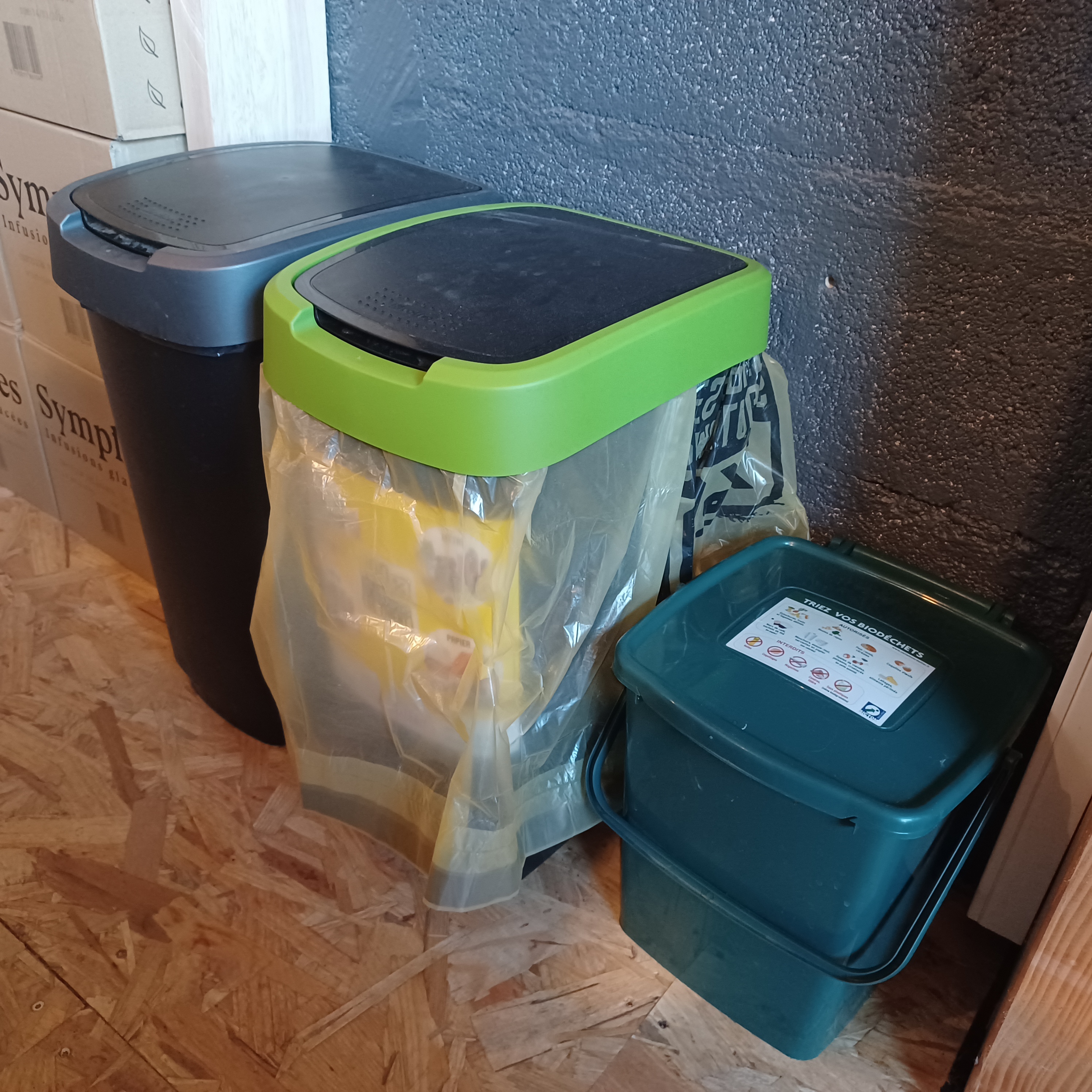 ... l'occasion de mettre à disposition du matériel pour les soutenir dans leur démarche éco-responsable : corbeilles de tri, trolley de transport des emballages en verre, boîte à piles, affichage personnalisé, mémo-tri aimantés, 2 composteurs et leurs bio-seaux, ainsi qu'un brass'compost, etc. Une fois leur installation terminée, je serai ravie de pouvoir vous proposer des événements avec eux au sein de cet éco-lieu !